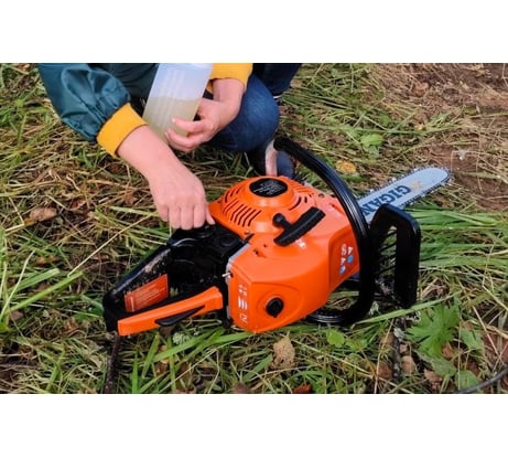 Бензопила отлично справляется с обрезанием кустов и небольших деревьев. Конструкция позволяет легко разобраться в управлении, дает возможность работать в труднодоступных местах.