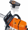 Безопасная работа Защитный механизм за считанные доли секунды останавливает пильную цепь при нажатии на передний упор для рук, а в случае сильной отдачи цепной тормоз QuickStop срабатывает автоматически. |