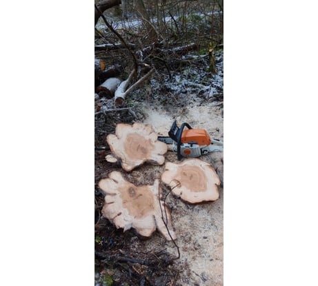 Однако пилит и торцевые срезы комель черемухи.