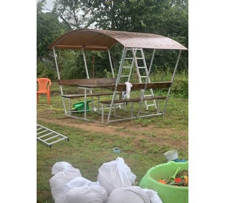 Отличная беседка, очень крепкая и вместительная, смотрится отлично.