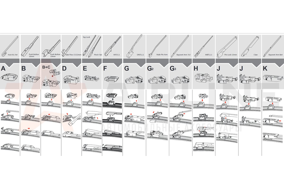 Бескаркасная щетка стеклоочистителя (600 мм, 24", 10 адаптеров) Airline AWB-BK-600