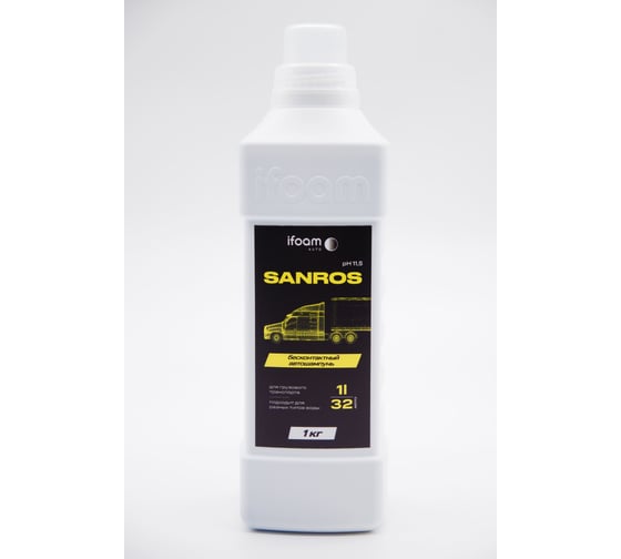 Бесконтактный автошампунь Ifoam Sanros - двухкомпонентное концентрированное моющее средство для бесконтактной мойки легкового и грузового автотранспорта, сельскохозяйственной техники, тентов, автоцистерн автомобиля. Эффективно удаляет сложные дорожные загрязнения. В состав входят антикоррозионные компоненты.