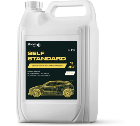 Бесконтактный автошампунь Ifoam SELF STANDARD - концентрированное высокопенное моющее средство для применения на мойках самообслуживания, для бесконтактной мойки автотранспорта. Эффективно удаляет пыль, грязь, масло и следы насекомых. Не забивает трубопроводы и систему дозации. Легко смывается с поверхности, не причиняет вреда лакокрасочному покрытию и хромированным деталям. В состав входят антикоррозионные компоненты.