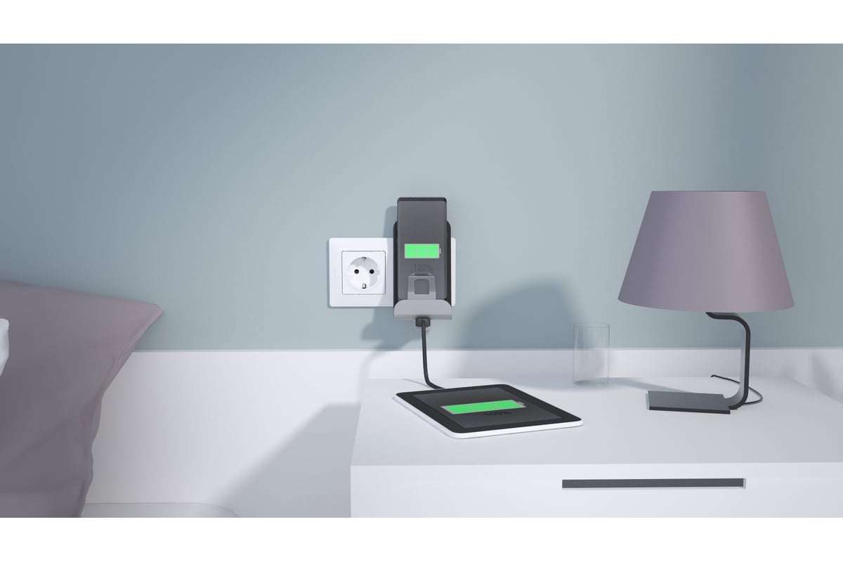 Беспроводное зарядное устройство Legrand Qi Etika 1000мА 5Вт с дополнительным разъемом USB тип A 2400мА 12Вт белый 672237