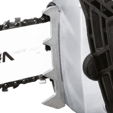 Безопасность Передний щиток служит одновременно защитой руки и инерционным тормозом цепи. |