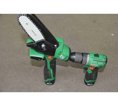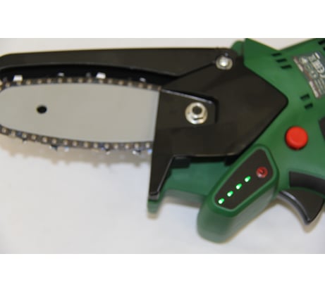 Небольшой вес. Аккумуляторы подходят от шуруповерта этой же марки. Натянуть цепь раз плюнуть.