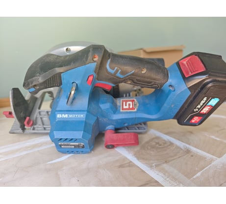 Отличные аккумуляторы. С аккум 6ah при работе циркуляркой заряда хватает на долго. В основном использую для торцевания досок 50х200 Штатный диск. Прекрасно торцует доски 50х200, расспускал им дюймовку , достаточно чисто Литая подошва. Корпус двигателя расположен на достаточной высоте , что можно закрепить струбцинами правило и не упрешься корпусом. Вес, даже с аккум 6ah вполне комофортно работать.
