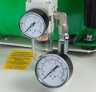 Контроль рабочего давления В конструкции BAMBI BB24V предусматриваются два манометра для визуального контроля давления в ресивере и на выходе. |