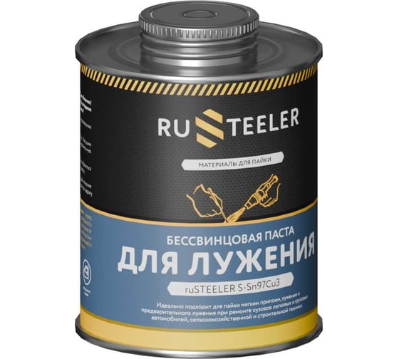 Бессвинцовая паста для лужения ruSTEELER (S-Sn97Cu3), банка с кисточкой 0,500 кг
