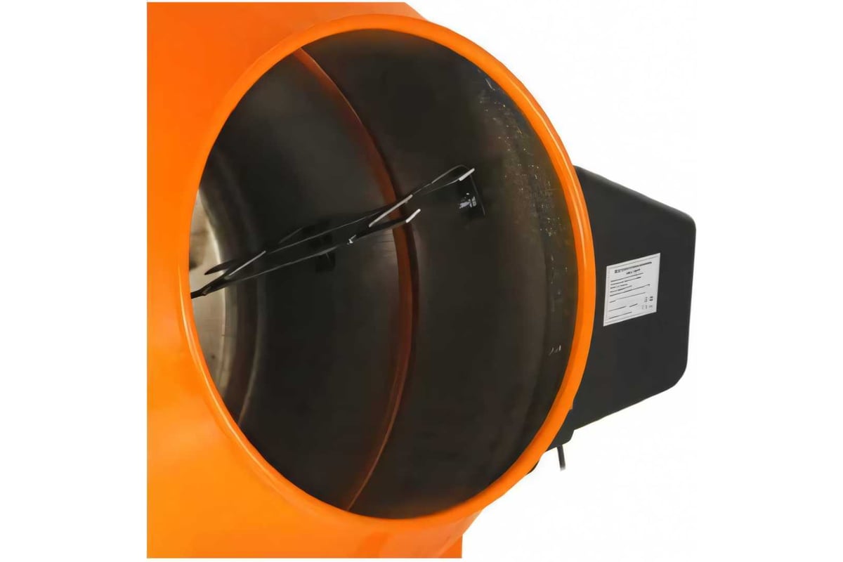 - Мощность устройства составляет 0,8 кВт, а объем барабана – 180 л. Эти параметры позволяют использовать электробетономешалку при строительстве дома, в профессиональной деятельности.