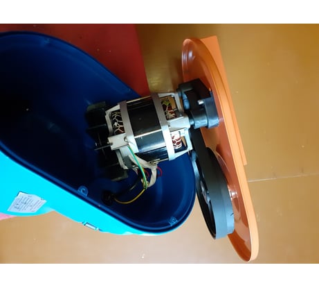 Замешал 2,5 куба бетона, не на максимуме, литров по 90 - стал слетать шкив с вала. Шкив оказался "лысым", без ручейков. Закрепил шкив с помощью болта - провернулась втулка, она здесь смешная - кусочек металла, запрессован в пластиковый шкив... короче - китайское дерьмо низшей пробы, движок тоже - киловаттом и не пахнет, максимум - 600 вт. Никаких опознавательных знаков производителя на нём нет - китай голимый... деньги немалые на ветер. Закажу токарю металлический шкив.может и поработает...