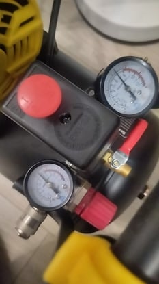 Скажу честно, это мой первый (в собственном пользовании компрессор), поэтому оценка очень субъективная. И тем не менее: аппарат очень понравился. Компактный. Собрано всё аккуратно, всё протянуто, все прокладки на месте, штуцера и кран держат давление, не травят. Работает довольно тихо, включал в доме, шум особо не напрягал. Давление набирает до 8,5 bar и отключается, скидывая давление до 8 bar. Один выход с рапид (EURO) 1\4 с регулятором давления, второй - кран (папа), на самом ресивере ещё два рапид (EURO) 1\4. Есть на ресивере клапан для спуска конденсата с барашком ( удобно спускать конденсат без ключей ). Кабель подключения к электросети 1 метр ( до вилки).