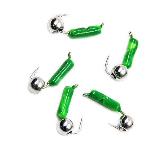 Безнасадочная мормышка ЯМАН Гвоздешарик, зеленый, d-2 мм, вес 0.45 г, шарик никелированный, 5 шт Я-МР1694