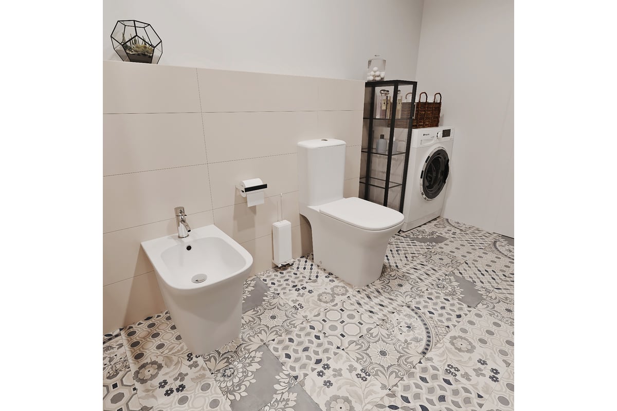 Элегантный вид напольного унитаза позволяет гармонично вписаться в интерьер современного санузла или ванной комнаты, наполняя его атмосферой роскоши и уюта.