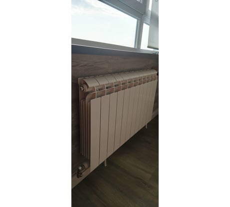Настоящий биметалл, вертикальный и горизонтальный коллекторы сделаны из стали (проверил магнитом). Тяжёлый, внушает доверие. Хорошее качество покраски. Высокая теплоотдача, пол под радиатором тёплый.