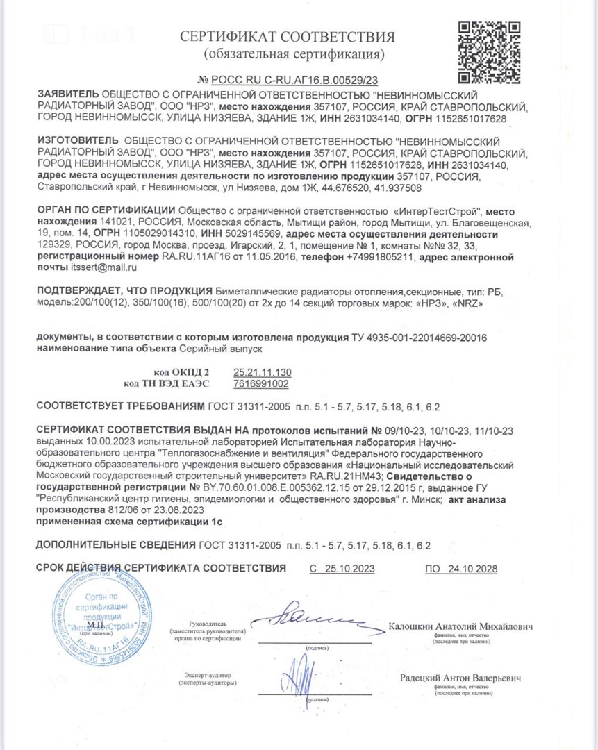 Главное преимущество радиатора НРЗ – полностью замкнутый цикл производства и подтверждение заявленного уровня теплоотдачи реальными испытаниями в аккредитованных лабораториях.