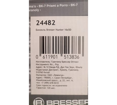 Отзывы о бинокле Bresser Hunter 16x50 Bresser 24482