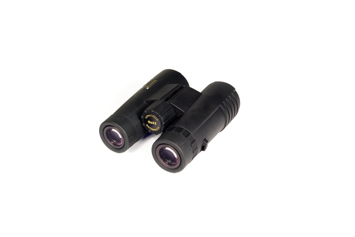 Бинокль полностью водозащищен и наполнен азотом. Его корпус изготовлен из пластика, устойчив к механическим воздействиям и обрезинен для крепкого хвата.