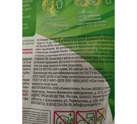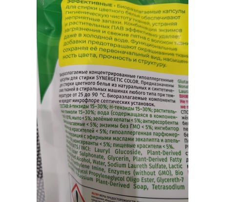 Отзывы о биоразлагаемых концентрированных гипоаллергенных капсулах для стирки SYNERGETIC COLOR 40 шт 109815
