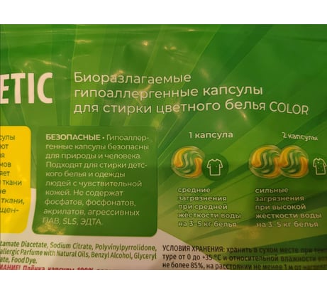 Не мало важно что порошок является экологичный и гипоаллергенным , чем помогает людям страдающим от аллергии не принося вреда природе Капсульная формула позволяет не переборщить с дозировкой