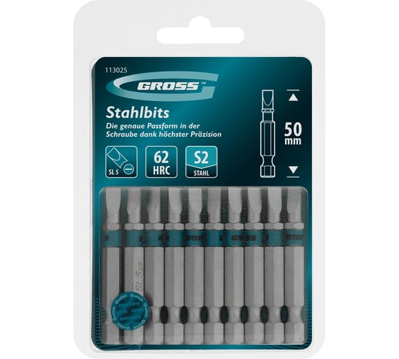 Бита GROSS SL5.0, 50мм, сталь S2, шестигр., 10 шт 113025