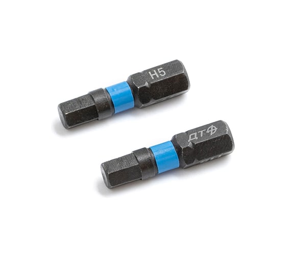Присоединительный квадрат: 1/4" Профиль: Н5 Длина: 25 мм Количество: 2 штуки Материал: сталь S2 Твердость: 58–62 HRC Покрытие: фосфатирование