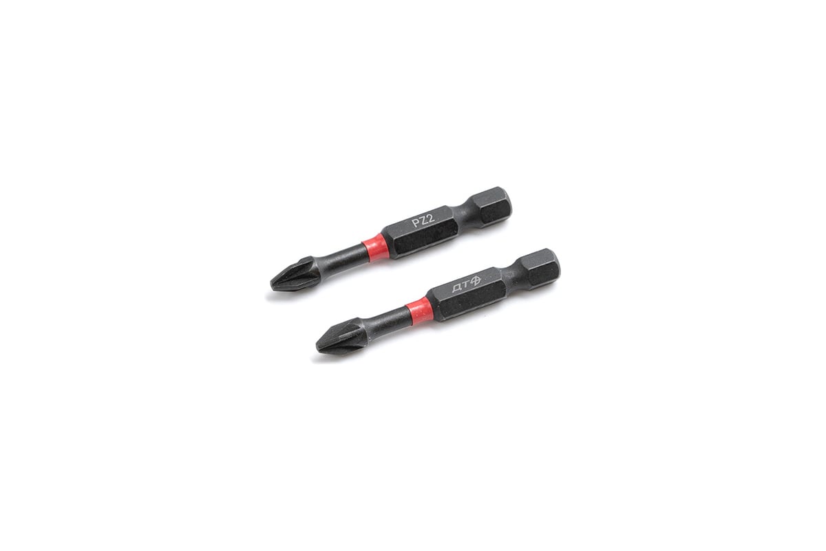 Присоединительный квадрат: 1/4" Профиль: PZ2 Длина: 50 мм Количество: 2 штуки Материал: сталь S2 Твердость: 58–62 HRC Покрытие: фосфатирование