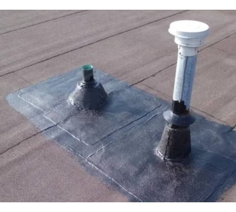 Гидроизоляции наружной вентиляции гаража в виде рыжей канализационной трубы, гидроизоляции бетонного основания