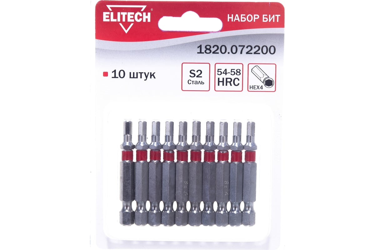 Биты (10 шт; HEX4; 50 мм; S2; 54-58 HRC) Elitech 1820.072200