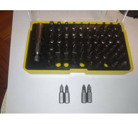 Отличный набор с большим количеством разновидности. Из минусов - коробка из куска гэ пластика. Плюсы - хорошие биты, использовал торксы, по срывал шляпы ржавого крепежа. Биты как новые. Докупил переходник на 1/4.