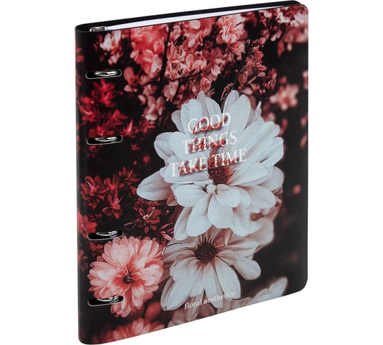 Бизнес-тетрадь на кольцах BRAUBERG А5 175х215мм, 120л, под кожу, VISTA, Цветы 405210