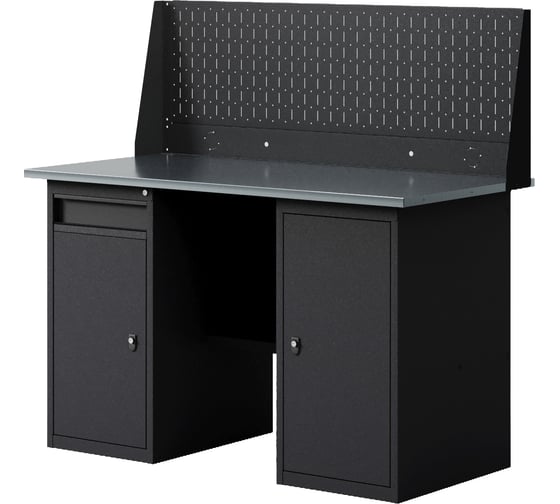 Верстак-стол Greenberg BLACK с перфопанелью одинарной с тумбой с дверцей и тумбой/ящик 1400мм VERSTAK_BLACK_WT_Р1_1400