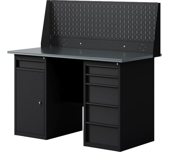 Верстак-стол Greenberg BLACK с перфопанелью одинарной с тумбой с ящиками и тумбой/ящик 1400мм VERSTAK_BLACK_WY_Р1_1400