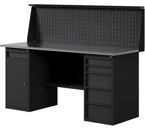 Верстак-стол Greenberg BLACK с тумбой с ящиками и тумбой/ящик с перфопанелью 1600мм VERSTAK_BLACK_WY_P_1600