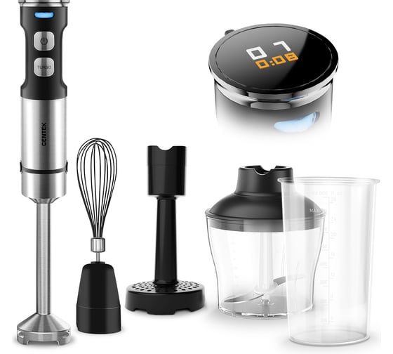Блендер Centek (сталь) 1500Вт, 5в1, блендер/венчик/чоппер, ДИСПЛЕЙ 650мл+мерный стакан 800мл CT-1366