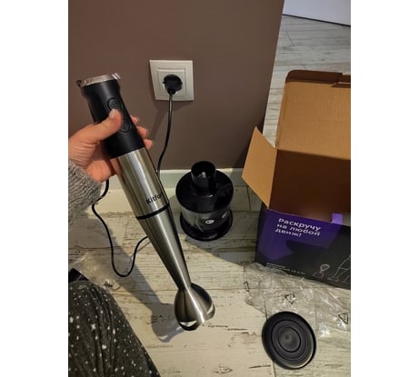 Работает тихо и мощно, легко справляется с орехами, овощами и даже замороженными фруктами. Насадки удобно снимаются и моются, а сам корпус довольно прочный и приятный на ощупь. Дизайн современный, управление простое — кнопки отзывчивые, не залипают. Для своей цены качество просто отличное!