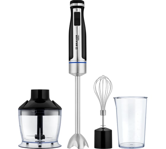 Блендер погружной BRAYER 1268BR 1500Вт, венчик,измельчитель500 мл, стакан600 мл, удлиненный блендер BR1268