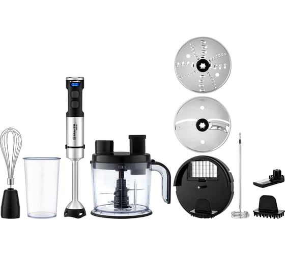 Блендер погружной BRAYER 1269BR 1500 Вт, измельчит 1,5 л, терка,шинков, рез кубик, венч., капуч. BR1269