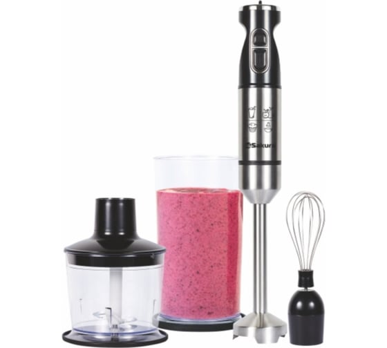 Блендерный набор SAKURA SA-6243SBK-1000 DC мотор 1000 Вт, стальн.корпус, венчик, чоппер, стакан УТ000001798