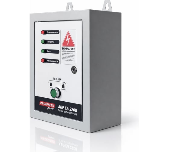 - Блок автоматического ввода резерва PROKRESS POWER EA 220B предназначен для автоматического запуска бензинового генератора при отключении основного электроснабжения и последующего переключения нагрузки на резервный источник питания.