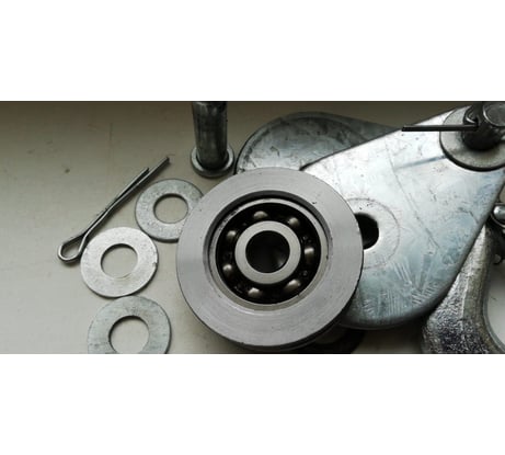 собран на каких то шайбах и шплинтах, пальцы на 8мм , а подшипник и все отверстия на 10 мм. Подшипник без смазки и ржавый внутри, похоже с металлолома взяли, не берите эту поделку.