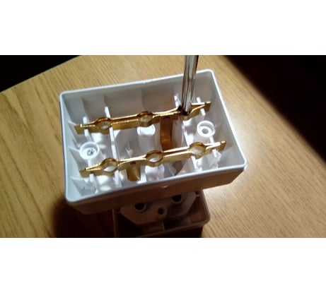Это, видимо. не недостаток, а опция. Туговато входили плоские вилки, хотя идея тонких сходящихся штырей облегчение вставления без потери достаточности пятна контакта при токах до 2.5А в розетках Евро. Пришлось немного доработать, чтобы и контакт был надежный и вилки вставлялись, как положено, легко.