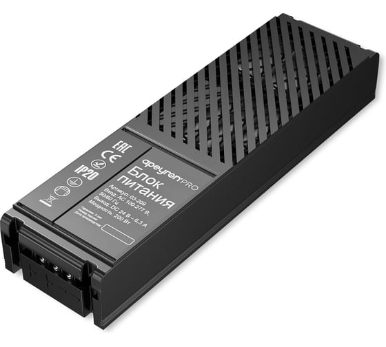 Блок питания 24В, 200Вт, 100-277В, 8,3А,IP20, алюм., 207х56х30, PRO, Черный / Apeyron 03-209