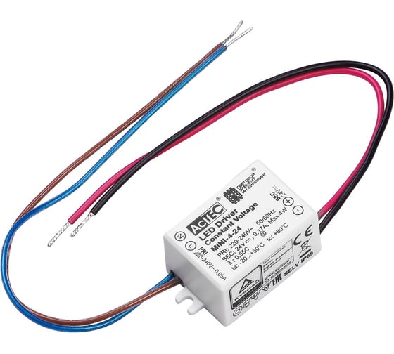 Блок питания AcTEC 24В, 4Вт, IP65, 0.17A, 48x27x21мм, MINI-4-24
