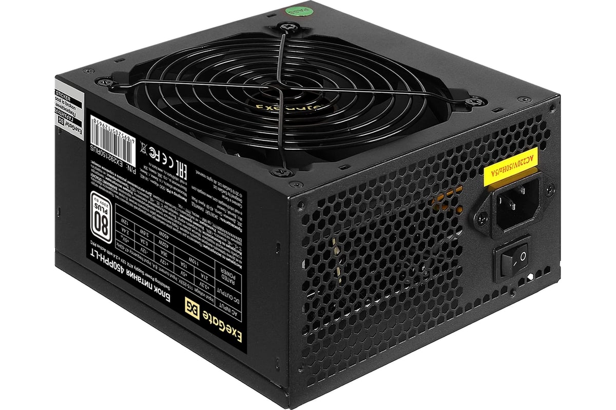 Блок питания ExeGate 450W 80 PLUS 450PPH-LT-OEM ATX, APFC, КПД 82 80 PLUS , 12cm fan, 24pin, 4+4 pin, PCI-E, 3xSATA, 3xIDE, black, RTL 292151
