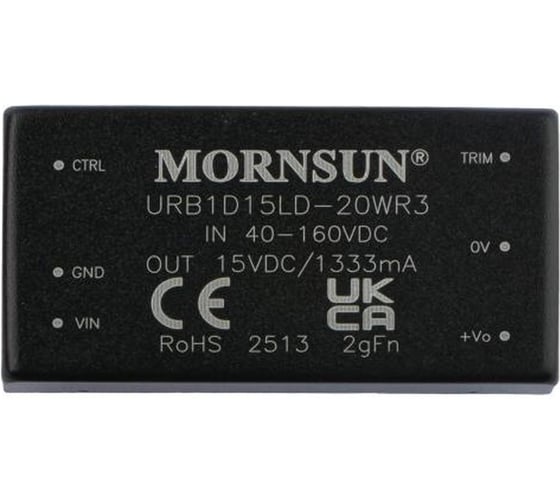 Блок питания MORNSUN URB1D15LD-20WR3 на печатную плату, в корпусе 2X1INCH, DC/DC 20 Вт 15 В, изолированный, широкий вход, однополярный выход 3152434