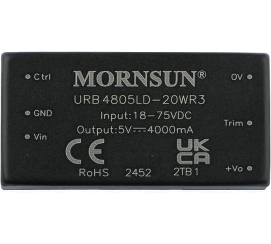 Блок питания MORNSUN URB4805LD-20WR3 на печатную плату, в корпусе 2X1INCH, DC/DC 20 Вт 5 В, изолированный, широкий вход, однополярный выход 3094533