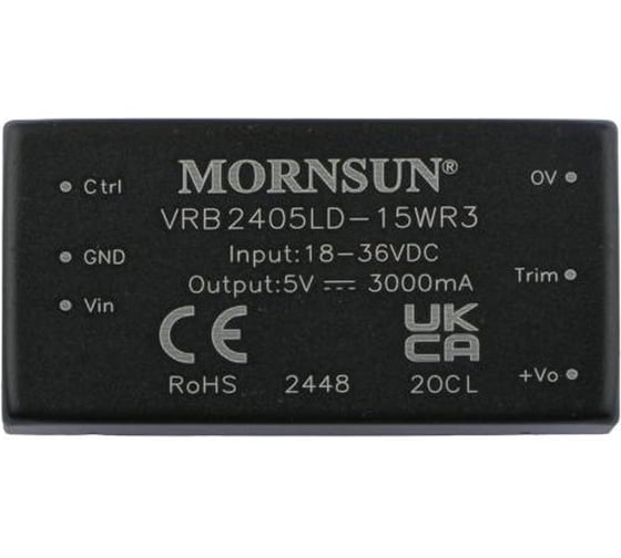 Блок питания MORNSUN VRB2405LD-15WR3 на печатную плату, DC/DC 15 Вт 5 В, изолированный, однополярный выход, стандартный корпус 3152768
