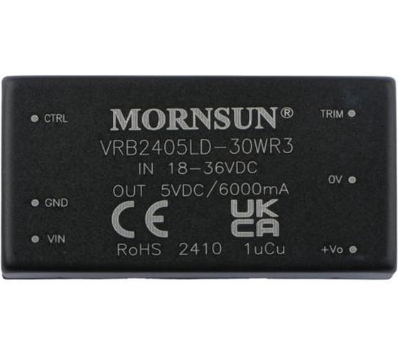 Блок питания MORNSUN VRB2405LD-30WR3 на печатную плату, DC/DC 30 Вт 5 В, изолированный, однополярный выход, стандартный корпус 3152770