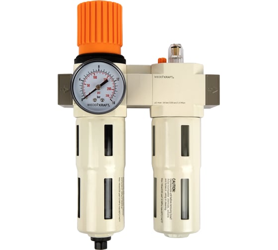 Блок подготовки воздуха WIEDERKRAFT 1/2, 16 бар с влагоотделителем 5 мк, лубрикатором и регулятором давления WDK-70140FA